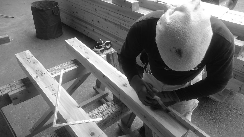 自社の大工が墨付け、